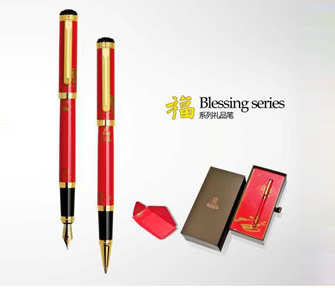 2.笔身经多道工序喷制纯正中国红精漆,特制独特的金漆百福图文;